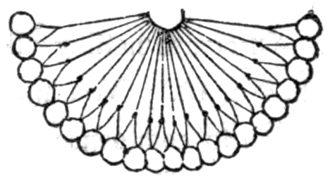 Cap Border Scollop.—You commence with one stitch for each scollop, as